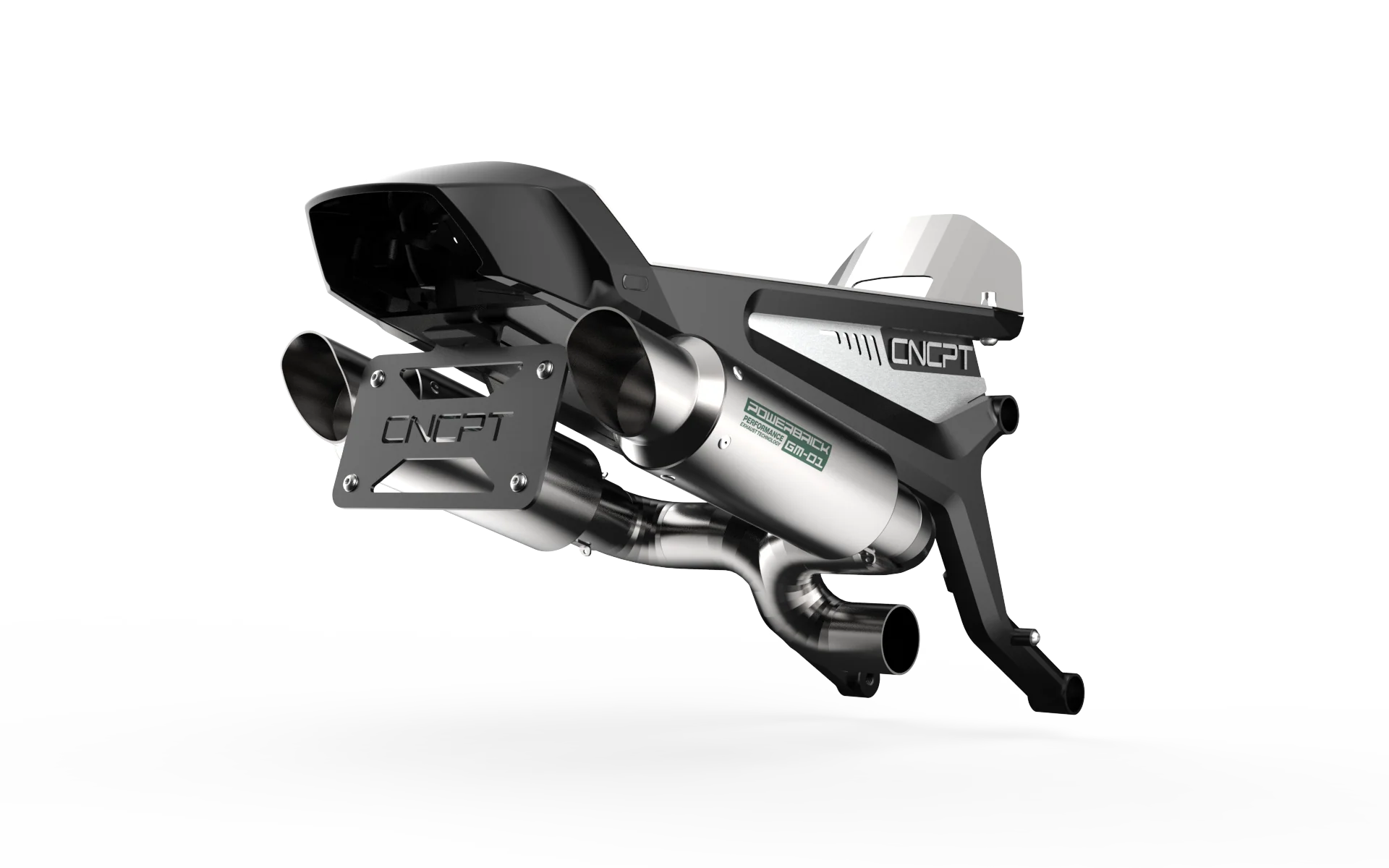 The entire 7-piece subframe is made from a solid piece of aircraft-grade aluminium and has a matte black anodised finish. All of the manufacturer's electrical components can be serviced thanks to a well-designed integrated compartment. The ABS pump has been moved to a more convenient location and can be connected using a hydraulic upgrade kit developed by Powerbrick engineers in close collaboration with Venhill Racing.