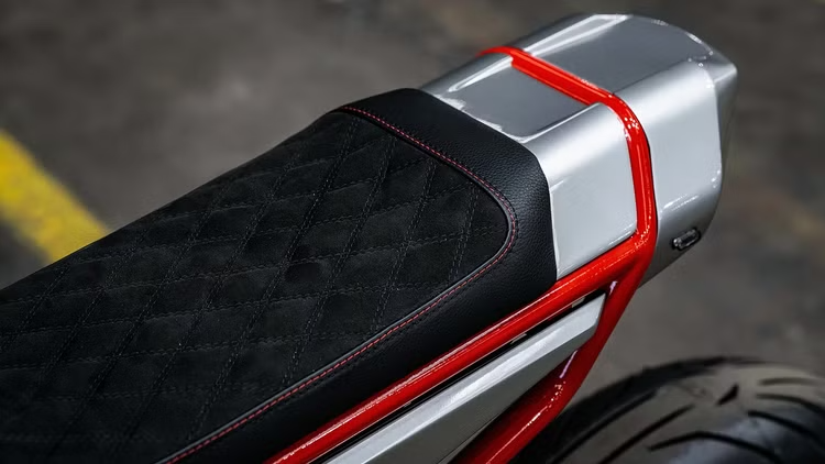 Powerbrick kept the Harley-Davidson aluminium modular frame, which is already quite sturdy and lightweight. However, for the sake of visual purity and more radical geometry, they completely redesigned the rear end. The rear subframe is now shorter, with a redesigned flat tracker-style seat that gives the bike a more compact, aggressive profile.