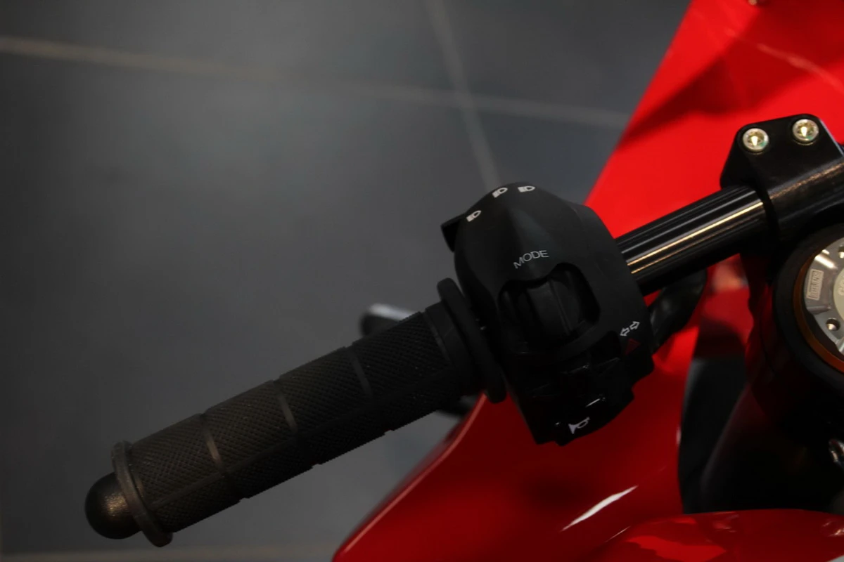 The extremely short handlebars serve their purpose of pulling the rider forward into an aggressive racing position, but in a normal compromise, they do not allow you to reach forward to find a more comfortable upright position. This is something to keep in mind if you plan to use it as a commuter bike. Behind the windscreen, a 4.3-inch colour TFT screen acts as the instrument panel with all the usual readings and a battery of interesting lights. In addition, the instrument panel acts as a portal for user settings, allowing you to choose between four riding modes and four regenerative maps for gradual power control.