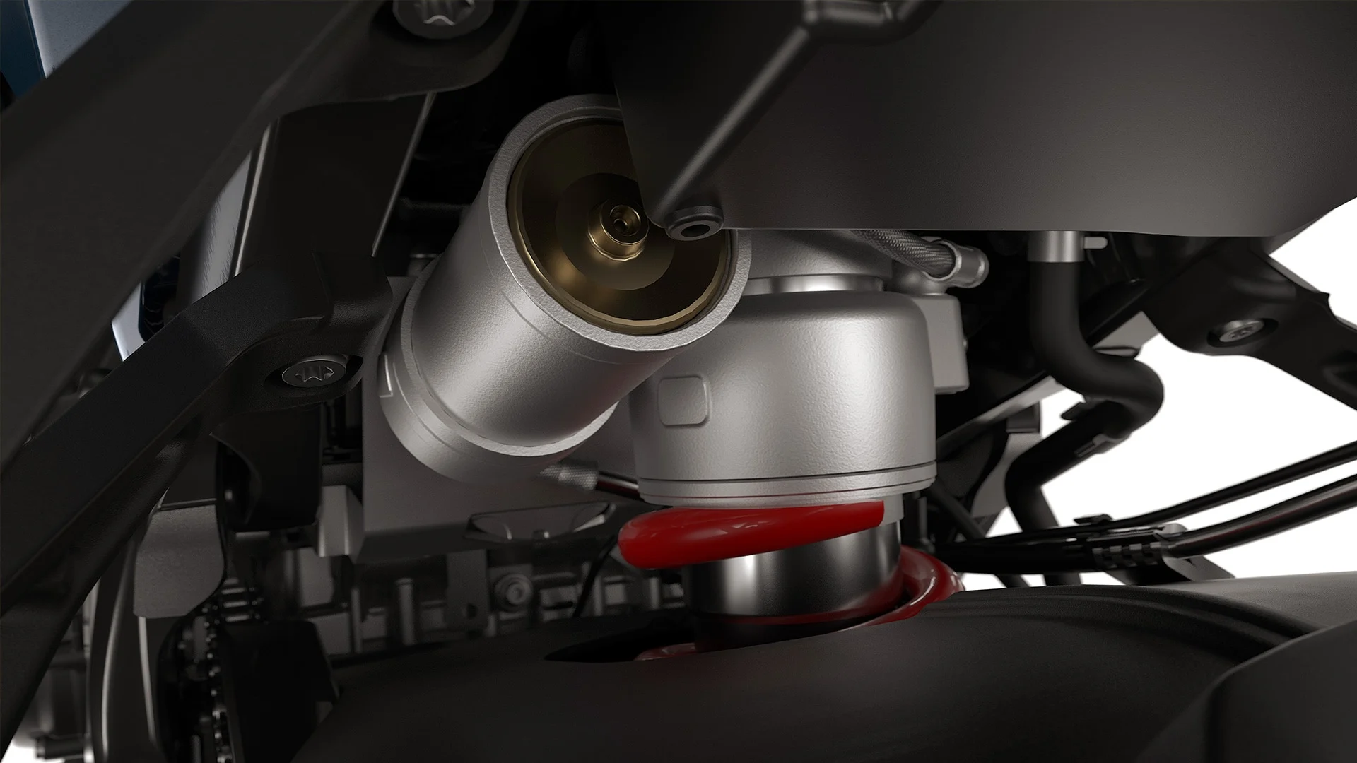 This is where the magic begins. Dynamic ESA doesn't just absorb shocks — it reads your riding style. When you press the throttle, the suspension becomes stiffer; when you release the throttle, it becomes softer. Of course, it also reads bumps and uneven surfaces. Hit a rough patch of road and you'll feel the bike glide smoothly over the bumps because the system is really cool. The 5.9-inch front and rear suspension travel allows you to ride smoothly even on gravel without fear of losing your balance.