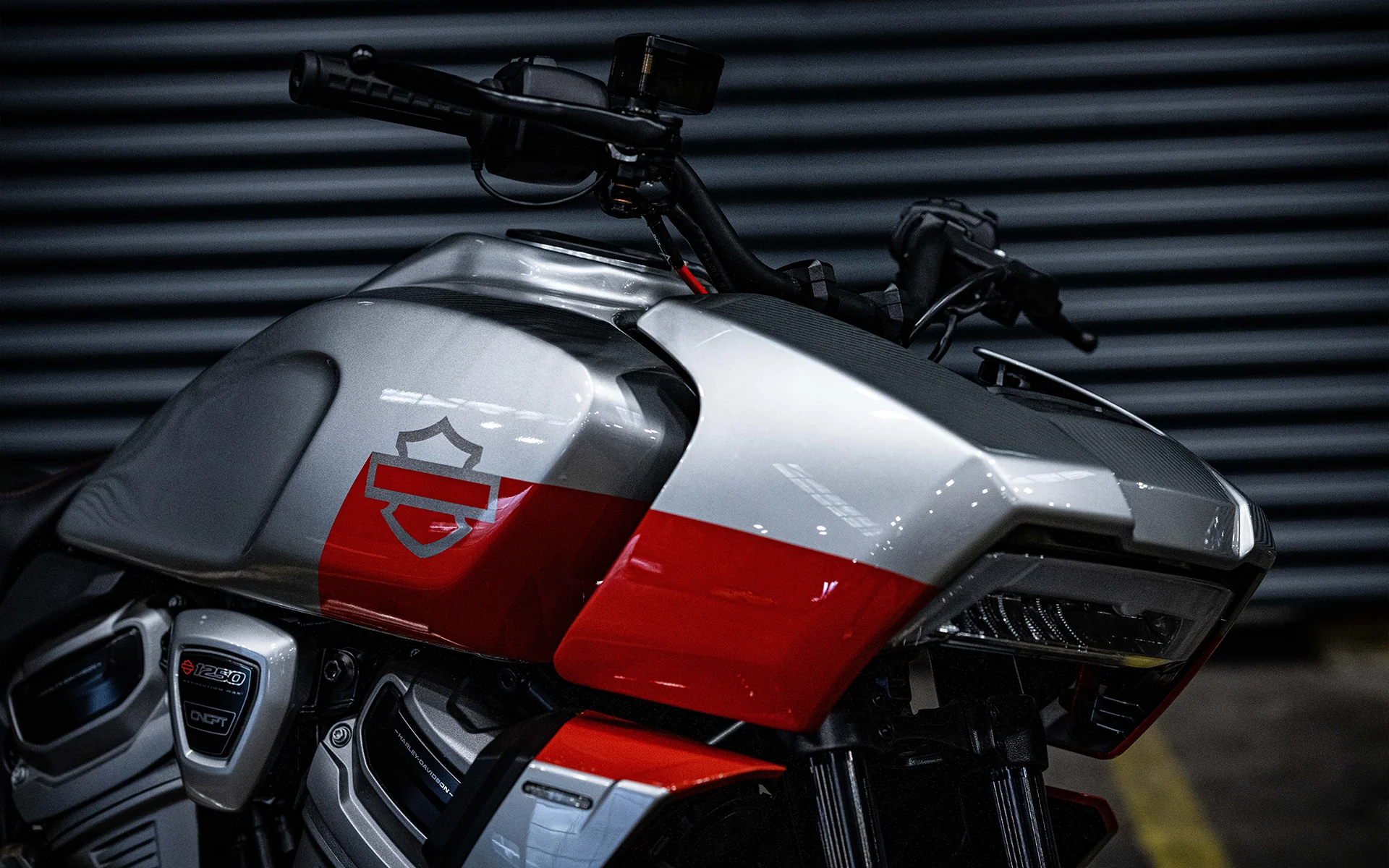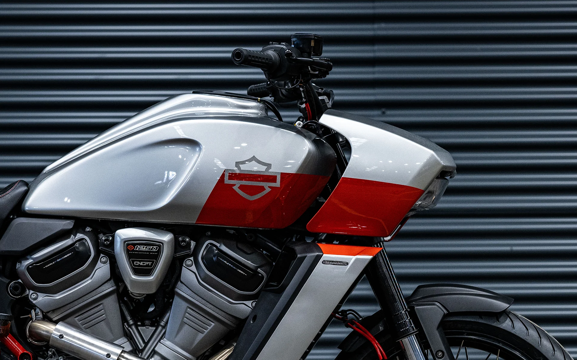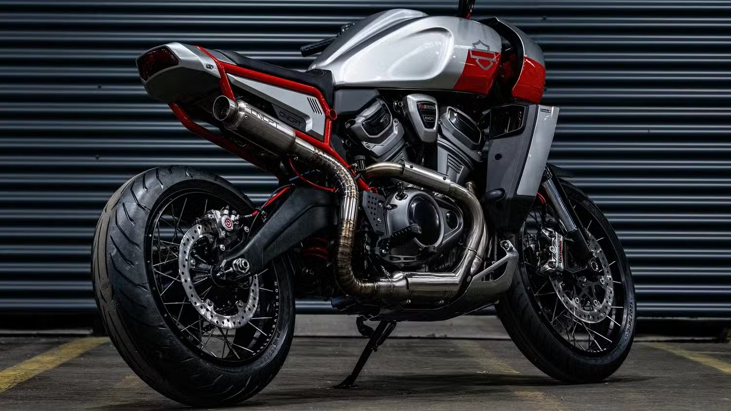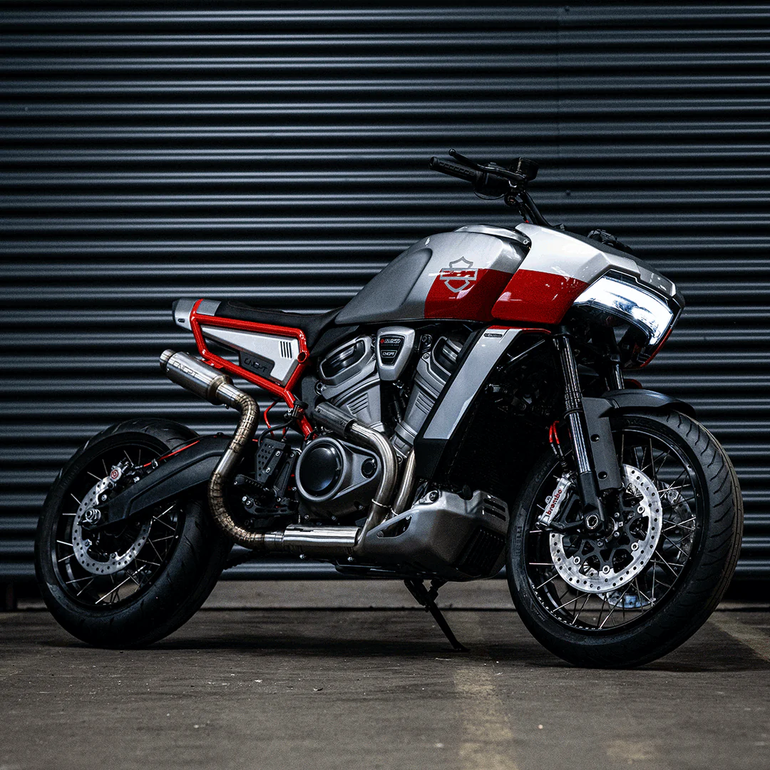 At the heart of the custom bike is Harley-Davidson's signature Revolution Max 1250 engine. It is a liquid-cooled V-Twin with a displacement of 1252 cm³, which produces about 150 hp in the standard version. In the custom version, the engine has been fitted with a new Powerbrick short exhaust system, which not only reduces weight but also adds a deep, muffled sound — a true streetfighter voice.
